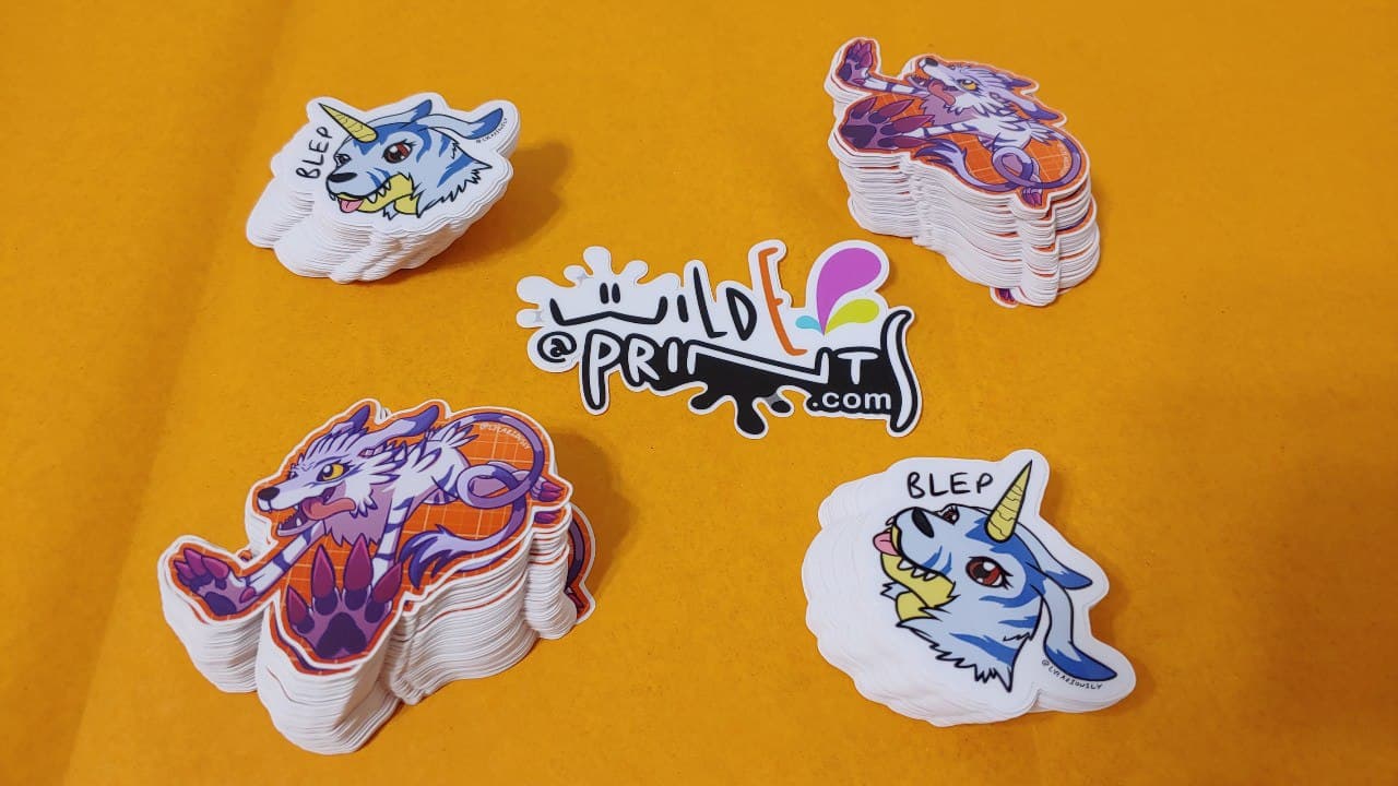 These stickers are die-cut vinyl with a glossy finish and manufactured in the United States. Due to being vinyl, they are weather-proof when stuck onto a clean, smooth/flat surface and shouldn't tear or leave behind sticky paper goop when removed. (Stickers left for a very long time may leave some adhesive residue, recommended to use rubbing alcohol to remove but test a small spot first to make sure that it won't discolor)
